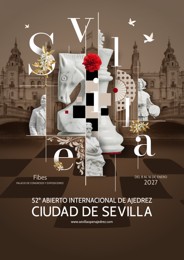 52 Abierto Internacional de Ajedrez «Ciudad de Sevilla» Del 8 al 16 de Enero de 2027 en FIBES ORGANIZAN: Contactoabiertosevilla@fsajedrez.com – 695 79 65 10 IM Liam Putnam 🇺🇸, campeón de la 51 edición de 2026 Álbum de fotos 2026 Patrocinadores